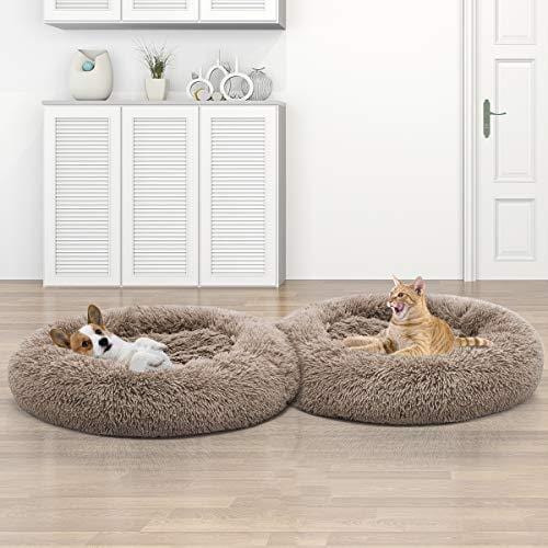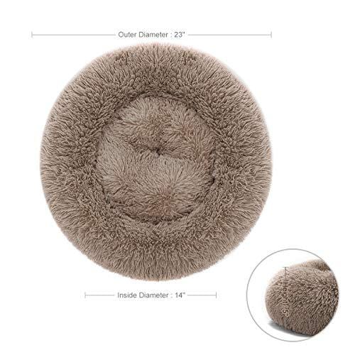 - ★ Super Comfort & High quality: The bed is about 23"x 23"x 5'', perfect for your cat, or small dog up to 25lbs. With faux shag fur, the round bed is ultra soft, warm and comfortable for your lovely friends. Urable nylon and luxurious faux fur come together help your pets restful sleep for improved behavior and better health.