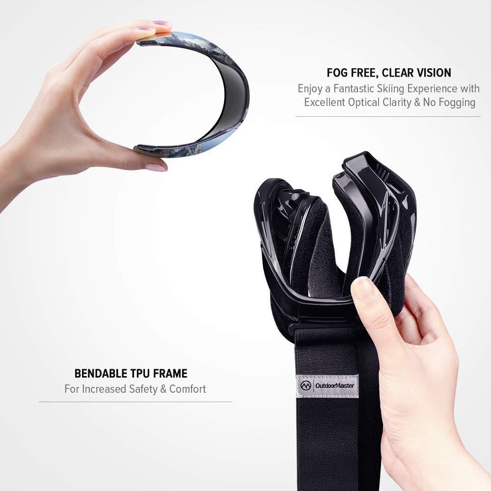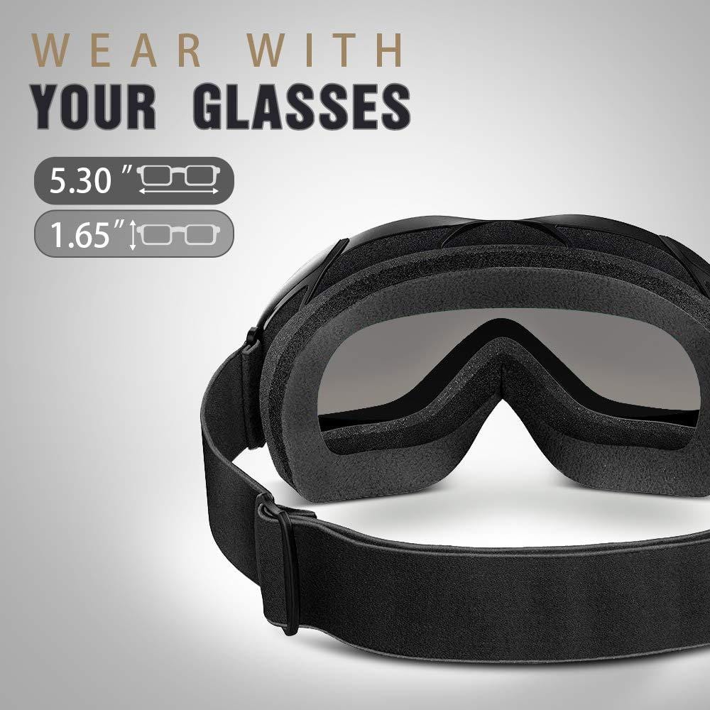 OutdoorMaster OTG Ski Goggles - Over Glasses Ski/Snowboard Goggles for Men, Women & Youth - 100% UV Protection (Black Frame + VLT 10% Grey Lens with REVO Silver)