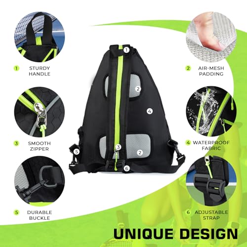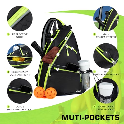 Overmont Pickleball Bag - Pickleball Sling Bags for Women Men - Adjustable Pickleball Paddle Bag - Pickleball Backpack with Fence Hook/Water Bottle Holder - Large Unisex Pickleball Gear Bag