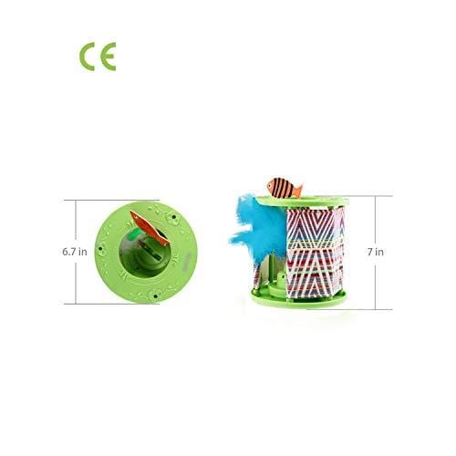 PETGEEK Cat Rolling Toy with Feathers, Automatic Cat Toys Interactive -Cat Toy Feather Teaser & Squeak Mouse Cat Toy Decoration Fish Crinkle Paper Inside, Wonder Pod Diameter 6.7" Height 7"