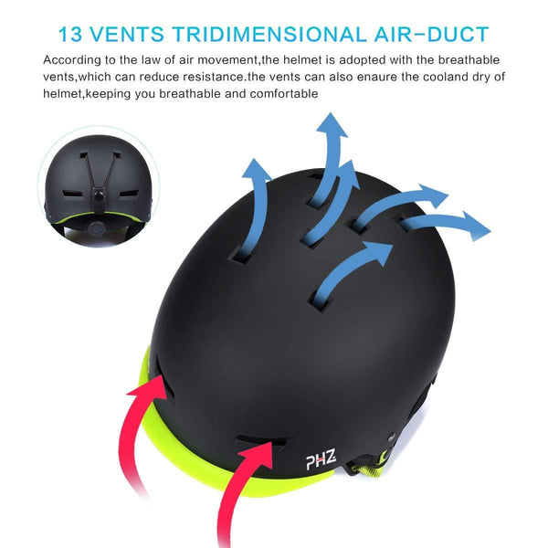PHZ. Ski Helmet, Snowboard Helmet - Adjustable Venting, Goggles and Audio Compatible, Removable Liner and Ear Pads, Safety-Certified Snow Sports Helmet for Men, Women & Youth