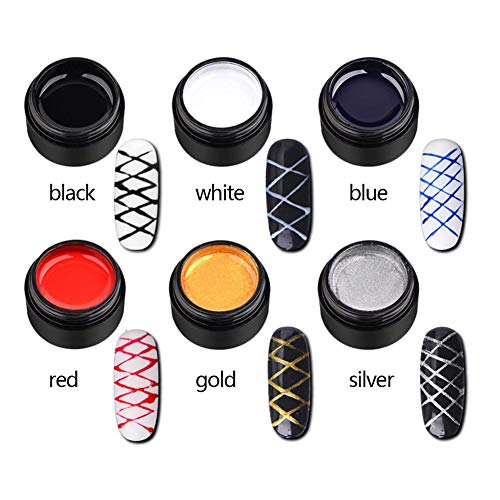 Pleasay 6 Colors Spider Gel Wire Drawing Nail Gel Nail Art Wire Drawing Gel Nail Polish with Gel Paint Design, DIY Pulling Line Silk Spider Painting Gel, UV Soak Off, Long Lasting, 5ml
