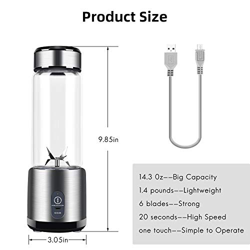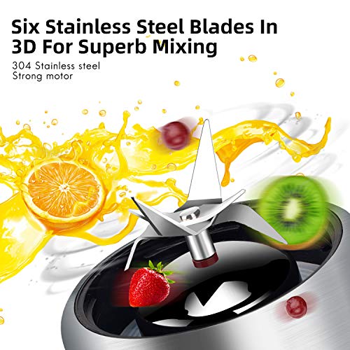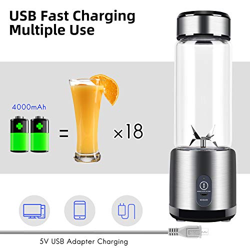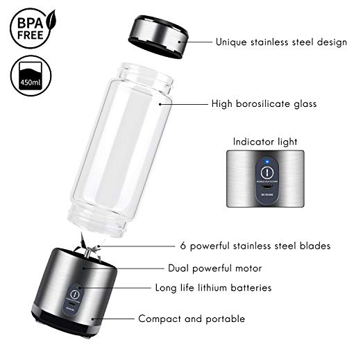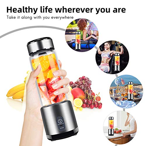 Portable Blender, Stainless Steel and Glass Body, Electric Juicer Cup Personal Size with USB Rechargeable, Mini Juice Mixer for Shakes Smoothies Home Outdoor