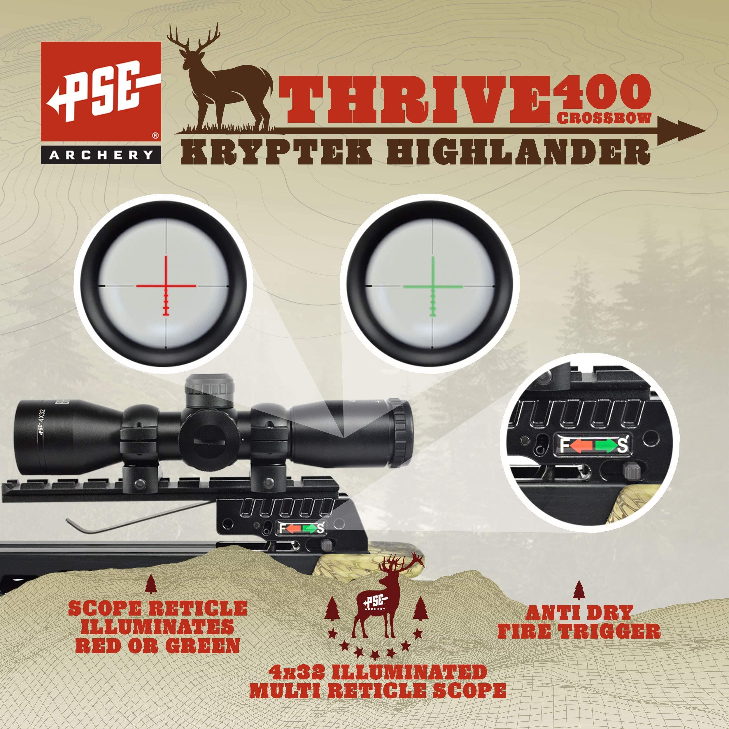 PSE Thrive 400 Crossbow Kryptek Highlander 175lbs 4x32 Illuminated Scope Package