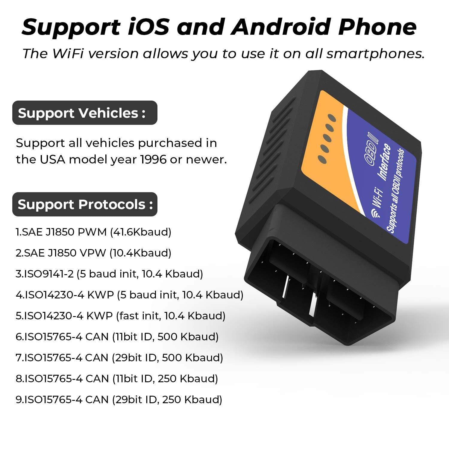 Rapify OBD2 Scanner WiFi Check Engine Light OBD Scan Tool Adapter Easy to Use Code Reader Reads and Clear Code Auto Scanner for iOS Android Windows Devices