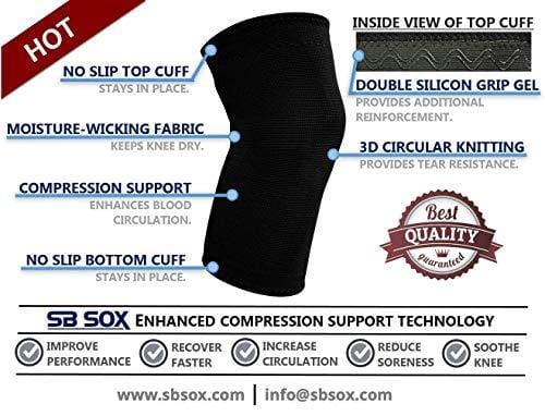SB SOX Compression Knee Brace for Knee Pain - Braces and Supports Knee for Pain Relief, Meniscus Tear, Arthritis, Injury, Running, Joint Pain, Support (Medium, Solid - Black)