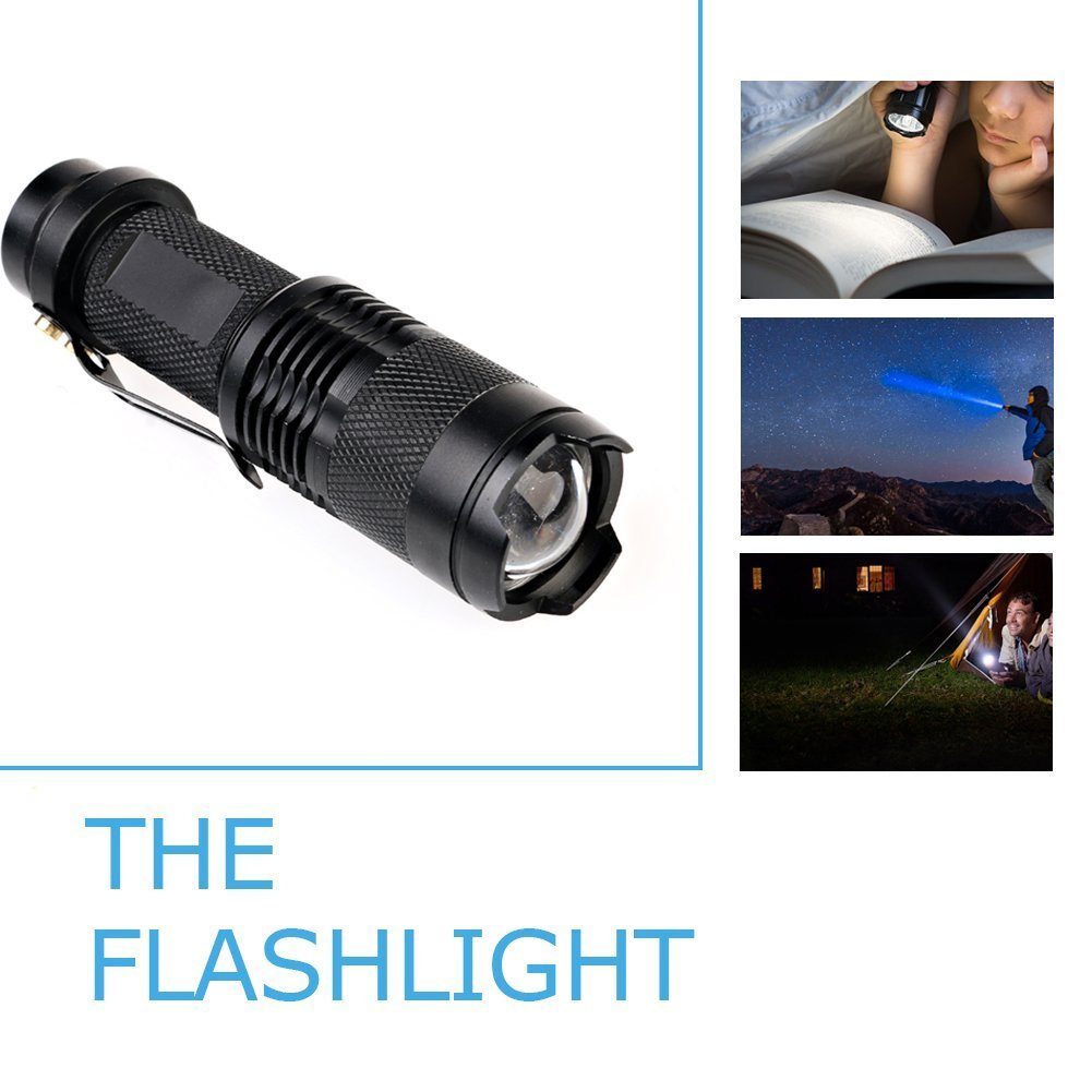 6.Flashlight: with zoomable design, heavy duty, compact handheld flashlights, zoom in for an intense beam or out for wider illumination. 3 light modes like high / low / strobe. with its ultra-bright LED light, and ability to run for hours of just a single AA battery(NOT INCLUDED).