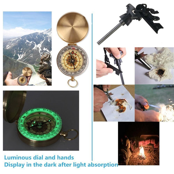 - Safety and Practical-Tactical Pen is capable of breaking glass in an emergency, can be used for self protection and writing. Survival Knife made with steel blade which is anti-rust. Compass features a class luminousness with a 360 degree rotating bezel