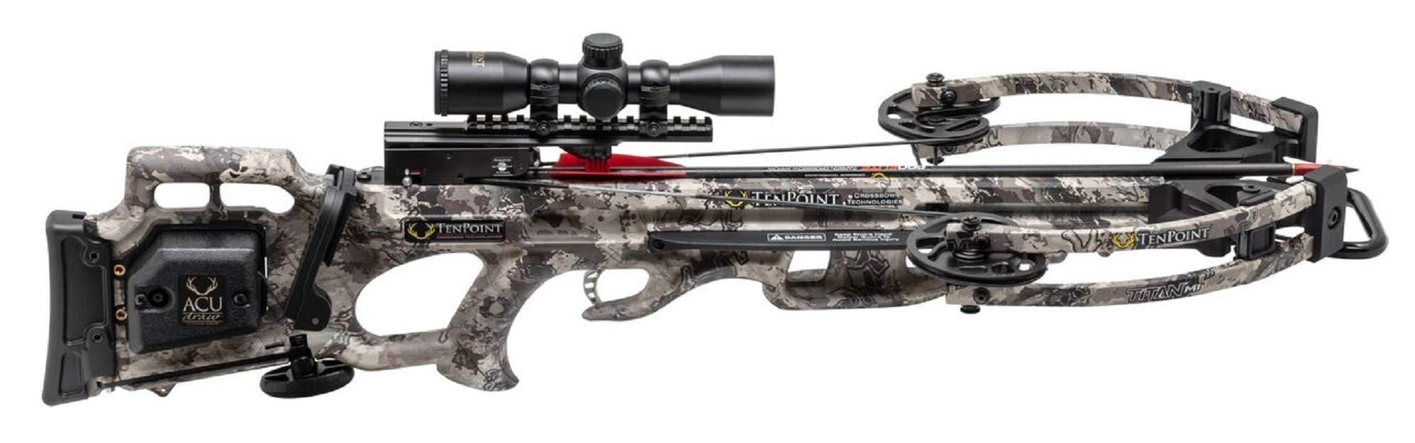 - TenPoint Titan M1 370 FPS Crossbow with ProView 3 Scope and ACUdraw Cocking Kit