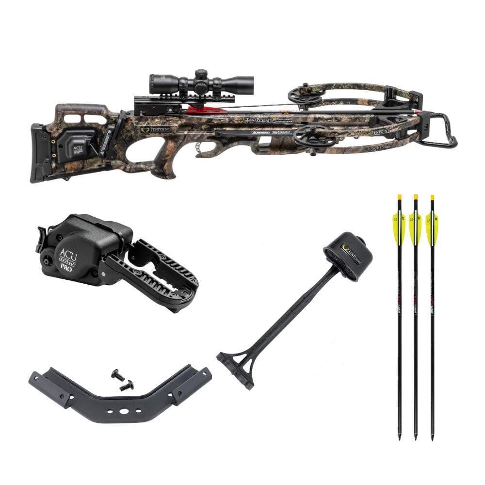 - BUNDLE INCLUDES: TenPoint Turbo M1 380 FPS Crossbow with ProView 3 Scope and ACUdraw PRO Kit, TenPoint Stag Hard Crossbow Case (Black), 6 x TenPoint Pro Elite Carbon Crossbow Arrows with Molded Alpha-Nock (20-inch), TenPoint Flight Rail & Trigger Lube, TenPoint Crossbows Mesh Hat (Mossy Oak Country Camo/Brown), and 3 x NAP Redneck Fixed Blade Crossbow Broadheads (3-Pack, 1-1/8-inch Cutting Diameter)