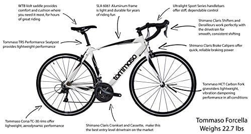Tommaso Forcella Endurance Aluminum Road Bike, Carbon Fork, Shimano Claris R2000, 24 Speeds, Aero Wheels - Matte White - Extra Small