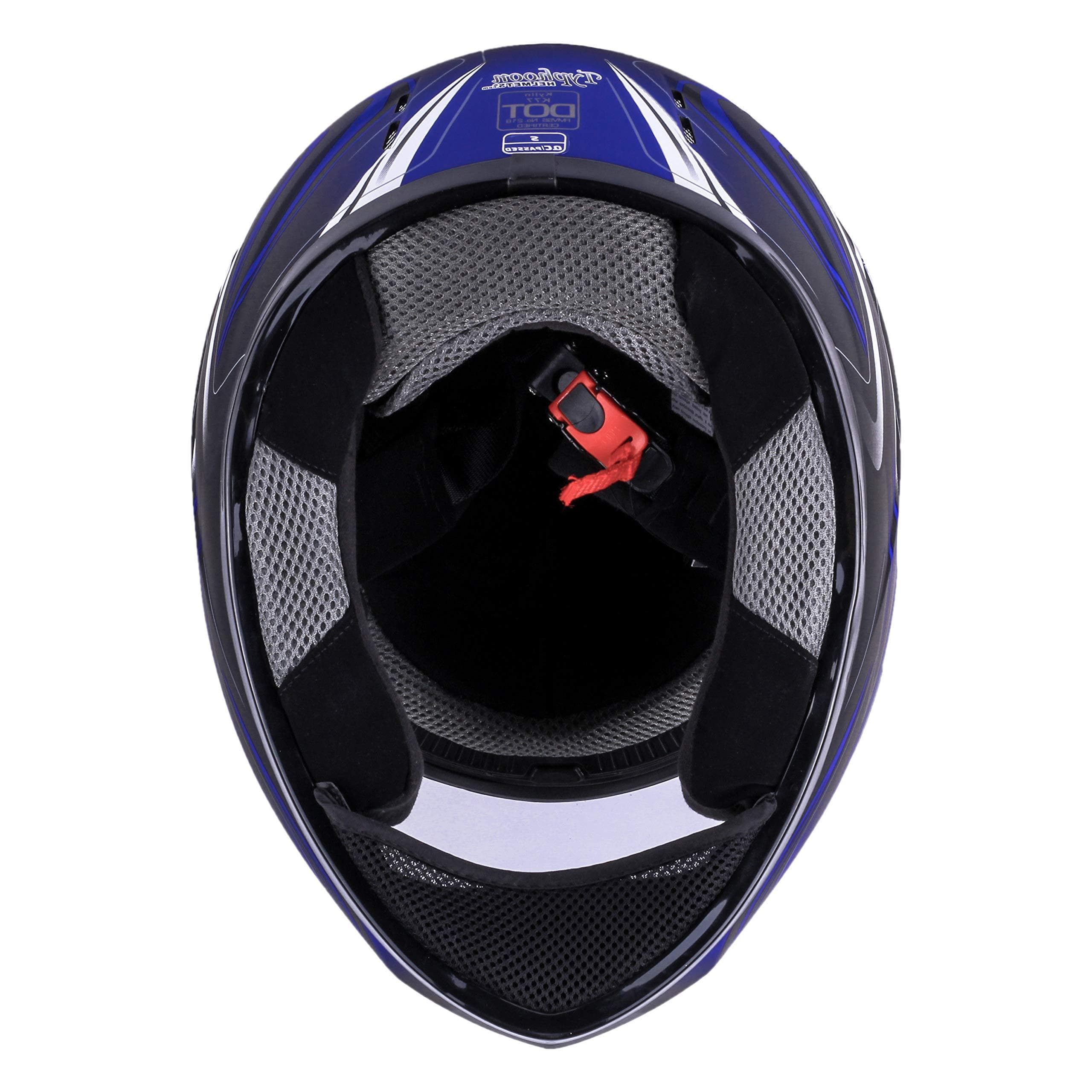 TCMT Dot Youth & Kids Motocross Offroad Street Motorcycle Dirt Bike Motocross ATV Helmet Blue Skull with Goggles Gloves (L)