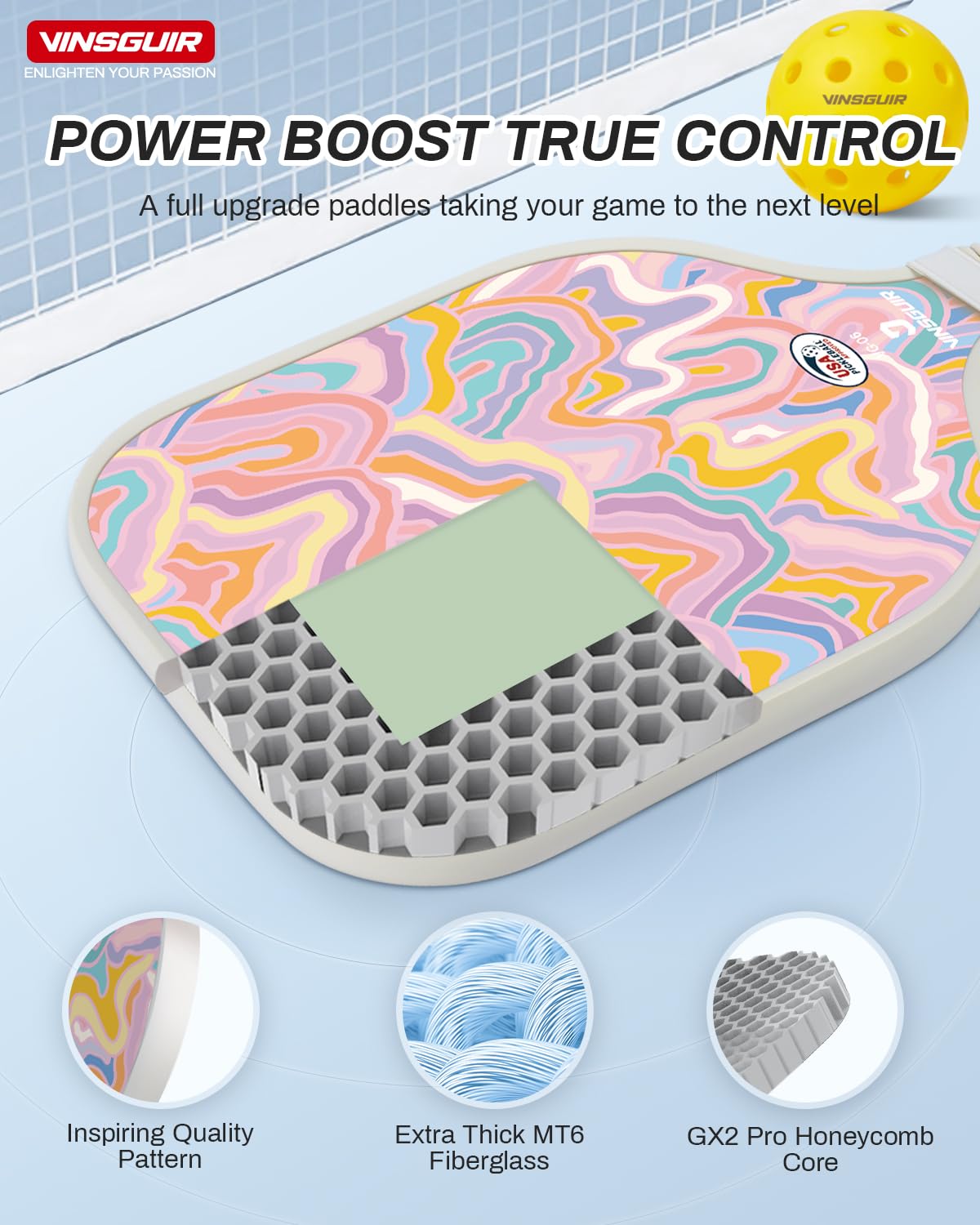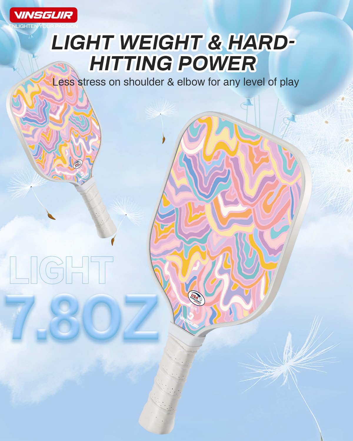 VINSGUIR Pickleball Paddles, USAPA Approved Pickleball Paddles Set of 2, Fiberglass Surface Pickleball Set with Pickleball Rackets, Pickleball Bags, Pickleball Ball Gifts for Women