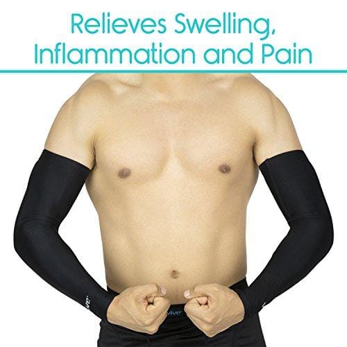 - EFFECTIVELY REDUCE SWELLING, INFLAMMATION AND PAIN: Made with a moisture-wicking blend, the Vive compression sleeves effectively reduce swelling, inflammation and pain, supporting the arm and elbow. Relieves soreness, cramping and fatigue due to rheumatoid arthritis, carpal tunnel and tennis elbow with therapeutic compression therapy. Great for basketball, volleyball, baseball, golf, training and more.