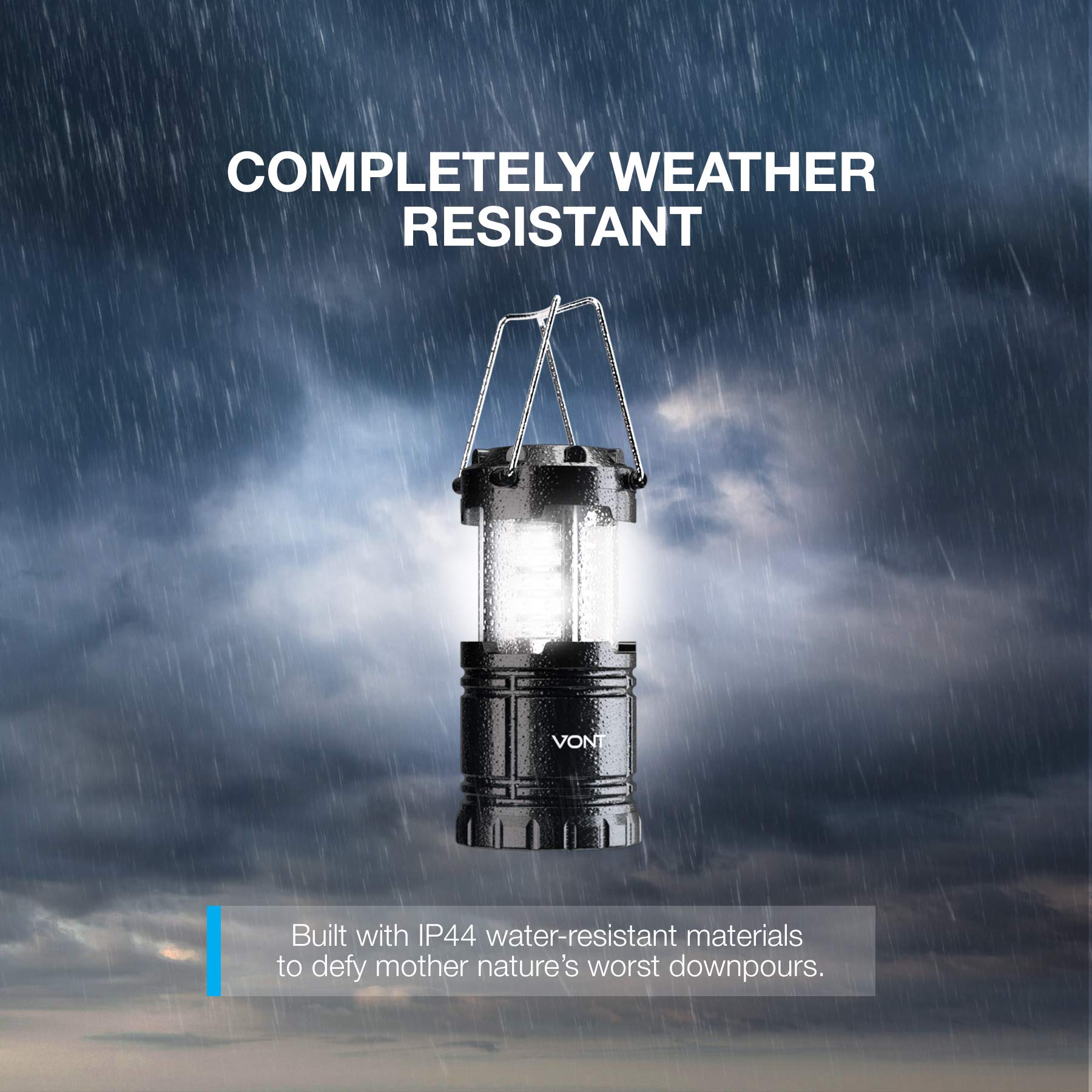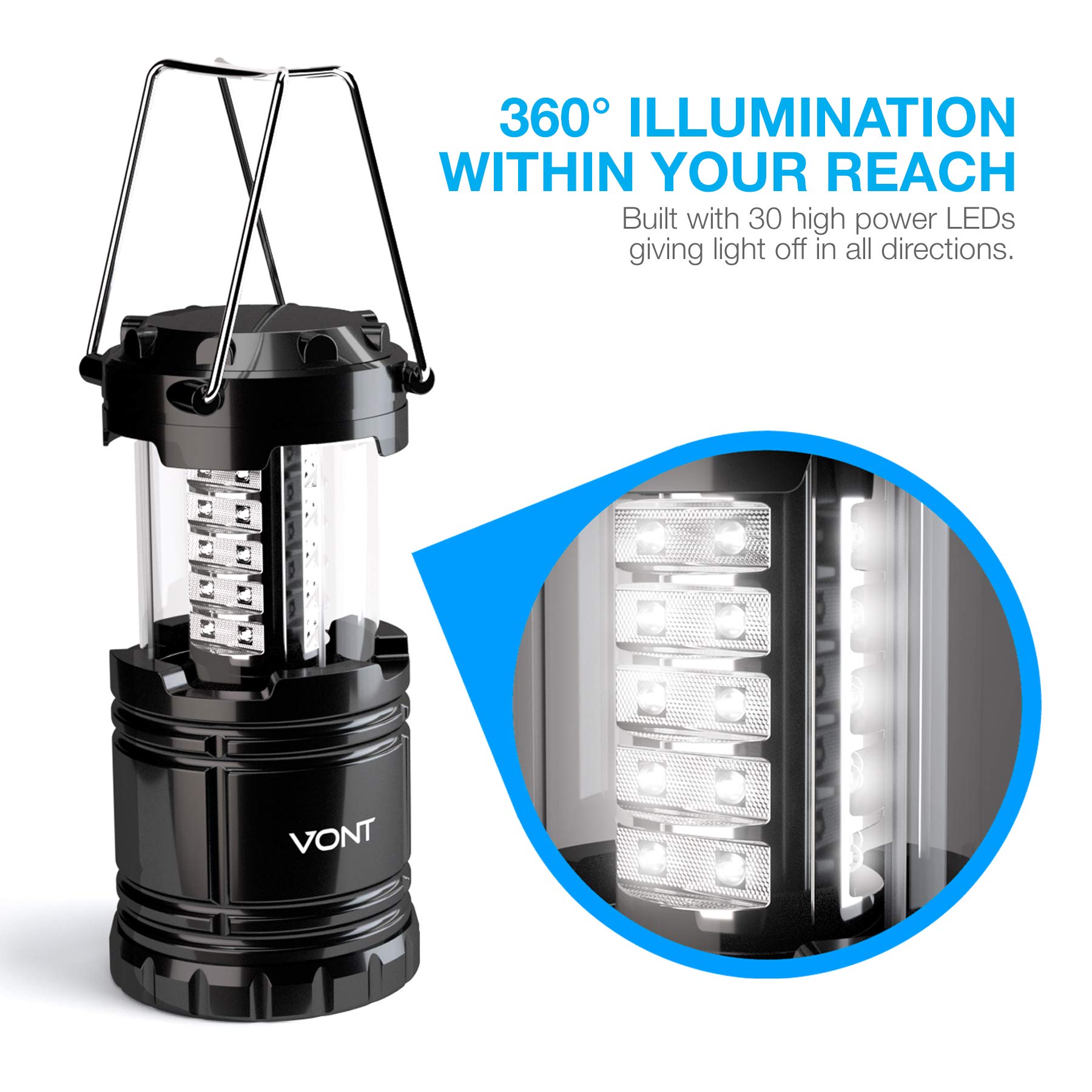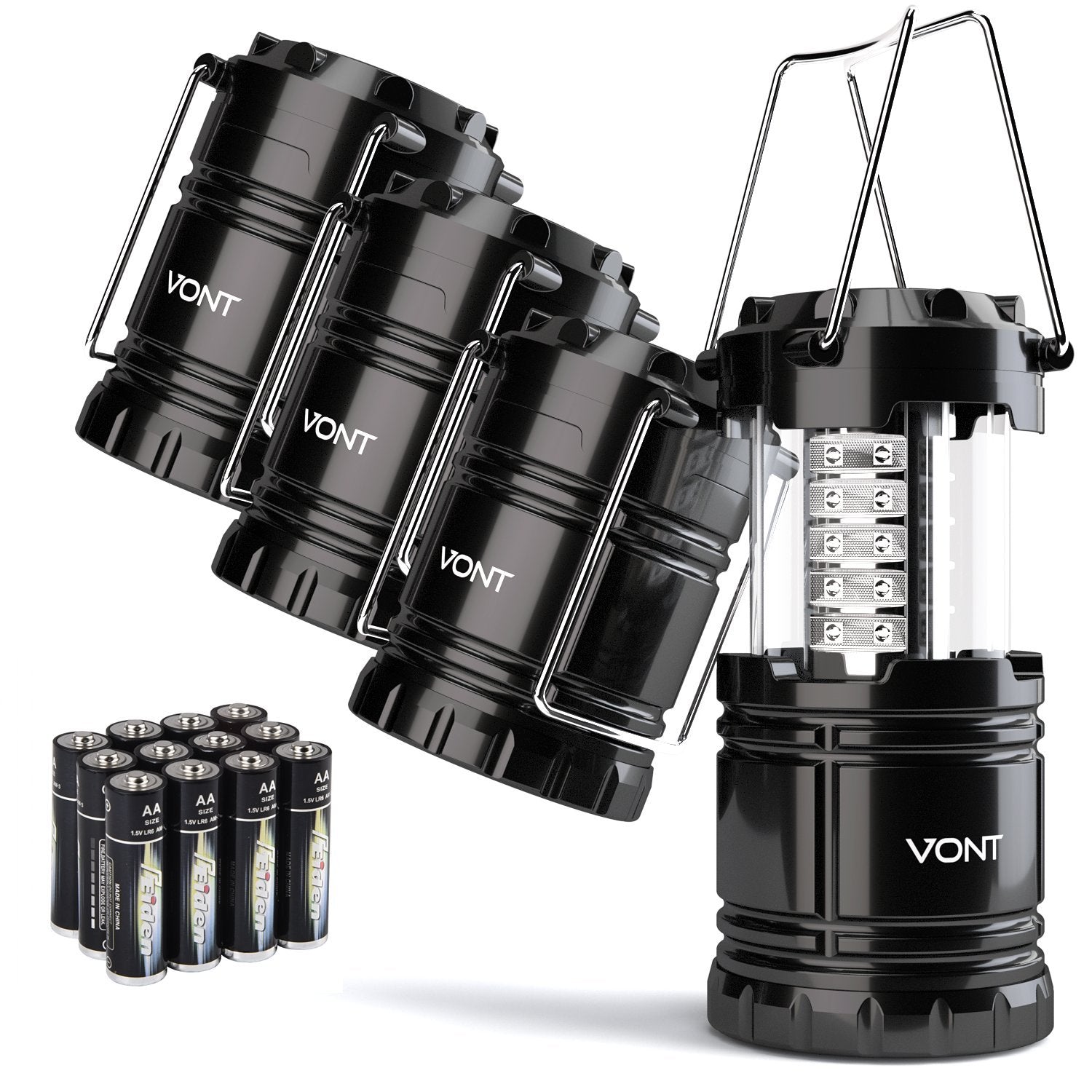 Vont 4 Pack LED Camping Lantern, LED Lantern, Suitable for Survival Kits for Hurricane, Emergency Light, Storm, Outages, Outdoor Portable Lanterns, Black, Collapsible, (Batteries Included)
