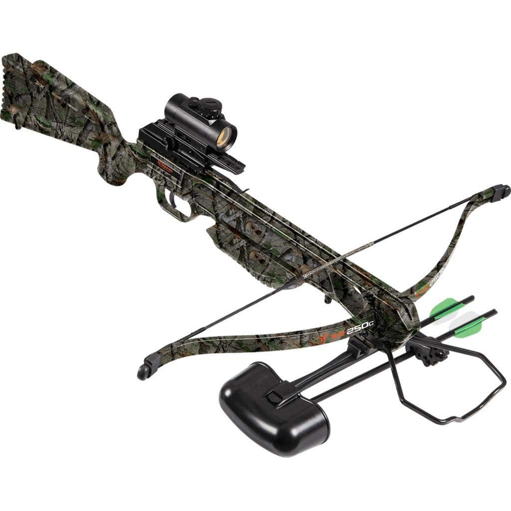 Wildgame Innovations XR250C Crossbow - Shoots 250 Feet Per Second Quiver, 2-18" Arrows, RCD & Red Dot Scope, Elude Camo