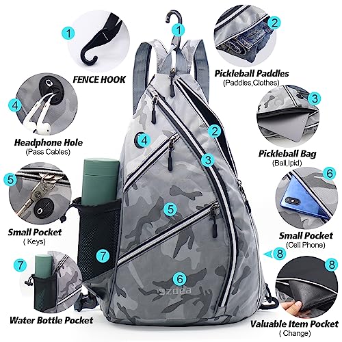 - HIGH PERFROMANCE - ZOEA pickleball sling bag was made of high quality 600d polyester fabric, which is lightweight but sturdy. It has great water-resistant & scratch resistant that can protect your pickleball gear from damage.