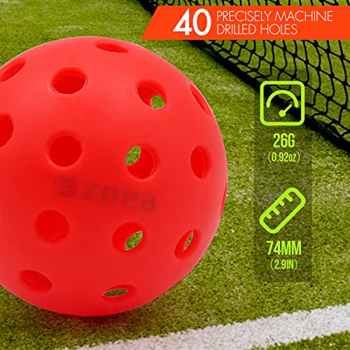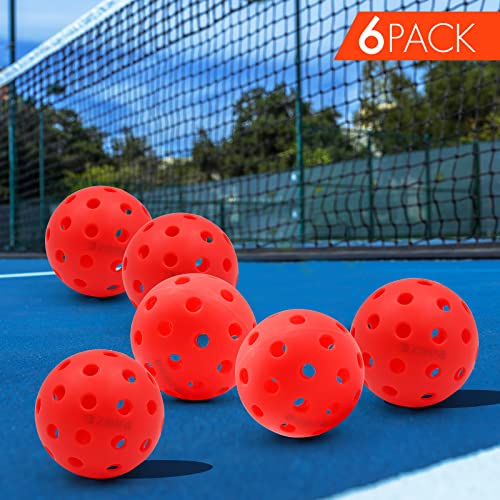 ZOEA Premium 40 Holes Outdoor Pickleball Balls, Durable Ball with Nice Bounce, High Visibility for Outdoor & Indoor Courts 6 Packs Bright Yellow & Green (Red)