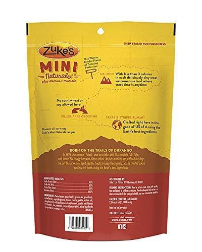 Details: Tempt your dog with a delicious reason to sit, stay and play with Zuke's Mini Naturals Peanut Butter & Oats Recipe dog treats. We craft these natural dog treats with quality ingredients, including peanut butter, for the taste that grabs his attention. Wholefood cherries and savory turmeric help him maintain a healthy lifestyle, and the small size makes these dog treats ideal for use as a training reward. Each tasty treat contains less than 3 calories, helping to keep his waistline trim while keeping his taste buds happy. Rest easy knowing he's getting a naturally tasty snack made without wheat, corn and soy. Every serving contains added vitamins and minerals to help support your dog's overall health and well-being, and the big flavor keeps him coming back for more. Feed your dog the fuel he needs to keep up with his active and adventurous lifestyle, and spend more time embarking on new adventures together when you make these low-calorie dog treats part of his daily routine.